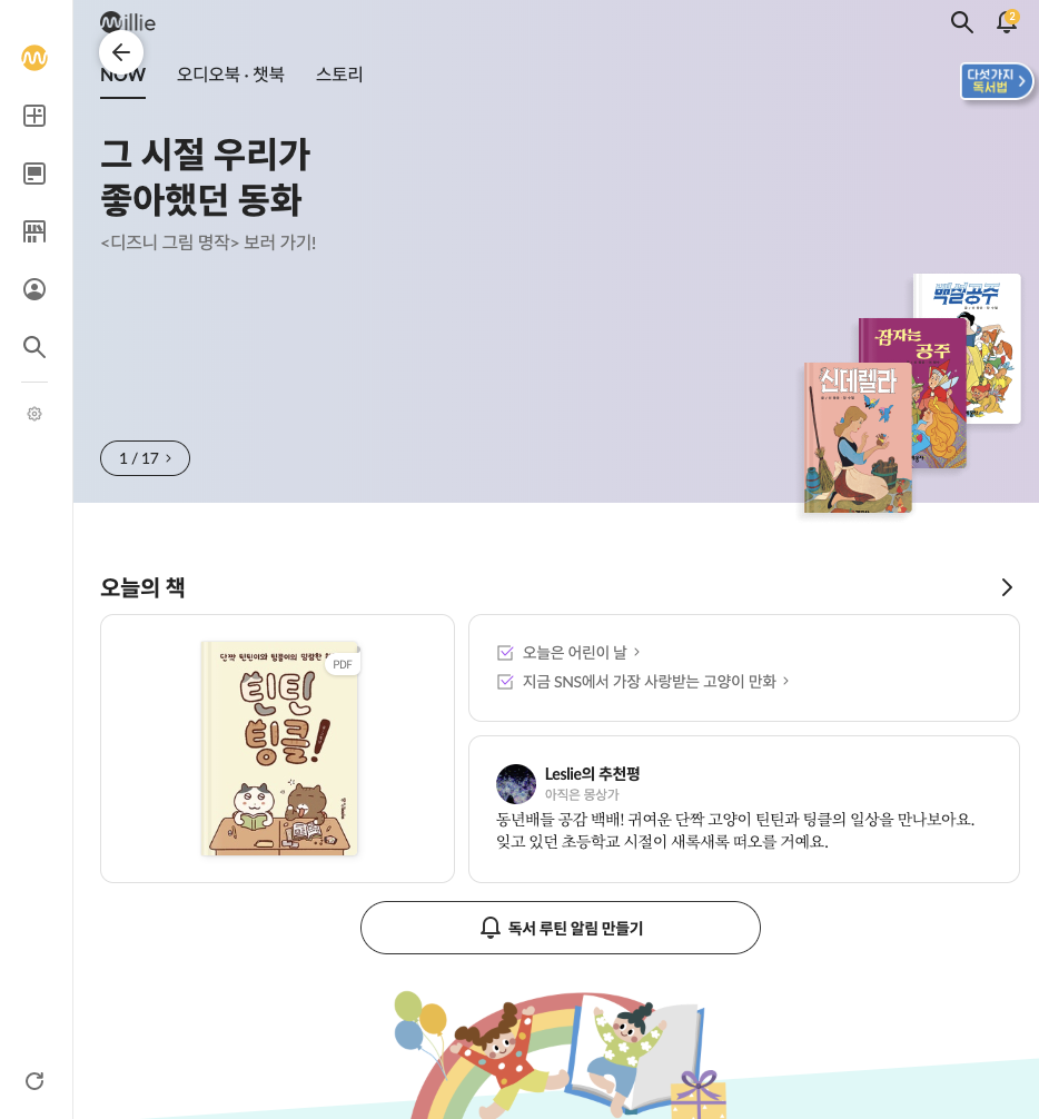 한편, 우측 사진의 밀리의 서재 앱의 랜딩페이지는 이미 구독한 사용자를 대상으로 만든 페이지이다. 많은 옵션, 많은 컨텐츠를 담기 보다는 시원시원한 여백을 활용해서 서비스에서 추구하는 감성을 효과적으로 전달하고 있다. 랜딩페이지에서부터 구매전환을 유도해야하는 다른 페이지들에 비해, 조금 더 천천히 사용자에게 다가가는 느낌을 준다. 원하는 컨텐츠에만 시선을 집중시키기 상대적으로 수월하여, 의도한 사용자경험을 효과적으로 만들어내고 있다.