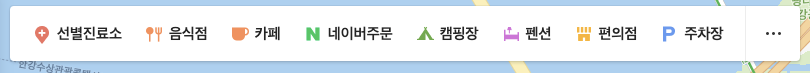 여기서만나 UI를 개발하면서 가장 큰 도움이 된 레퍼런스는 단연, 네이버 지도, 카카오 지도 그리고 구글 지도이다. 이 중 장소 카테고리 Chip UI로는 네이버의 장소 카테고리 chip을 아주 많이 참고했다.