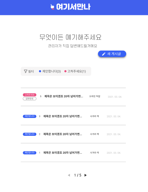 게시판에서는 라벨을 어떻게 처리할지에 시간을 들였다. 디자인 일관성을 유지하려고 게시글 라벨을 filled로 꾸며봤는데, 사용자가 라벨이 아니라 버튼같은 오해할 수도 있고 전체적인 밸런스감이 안좋다고 생각해서 outlined로 정하게 되었다.