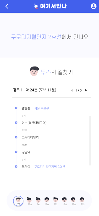 참석자를 선택하는 컨트롤러를 어디에 넣을지가 가장 고민되었다. 상단, 하단, 좌측, 우측 다 넣어봤는데 상단이 제일 깔끔하고 흐름도 자연스럽다고 판단돼서 상단에 배치했다. 피그마에서 작업할 때 아바타 일러스트 중 가장 정감이 가는 무스를 예시로 가져다 썼었다.