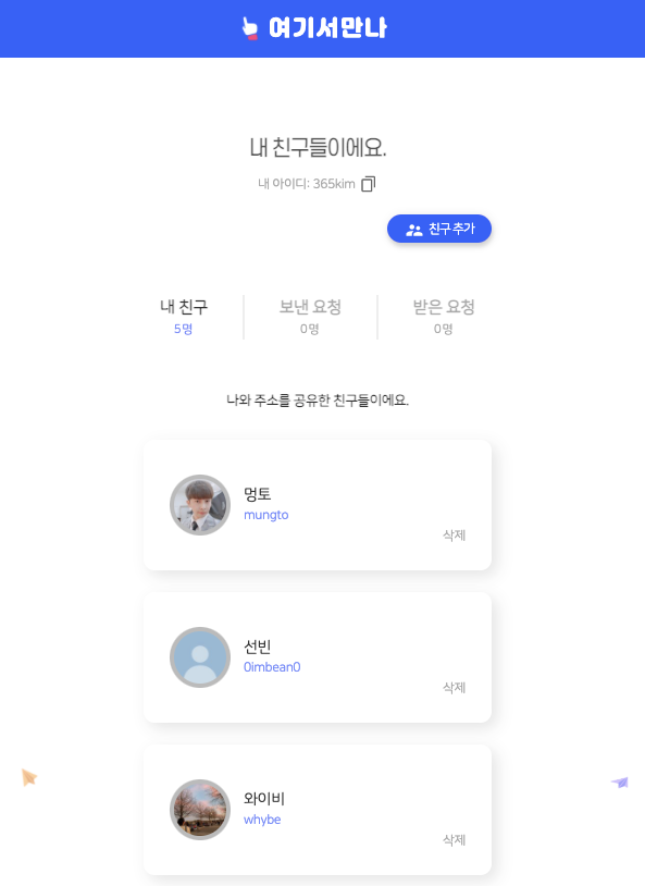 직접 입력 버튼이 사라지고 기본으로 직접 입력이 되도록 바뀐 것이 주요한 변화이다. '팔로잉 목록'에서 '간편 추가'라고 버튼 이름이 바뀌기도 했다. 우리 서비스에서 사용하는 '팔로워-팔로잉' 개념은 개발하는 우리도 헷갈려서 문제가 있다고 느꼈고, 친구 추가 메커니즘을 새로 정의하면서 사용하지 않기로 했다.