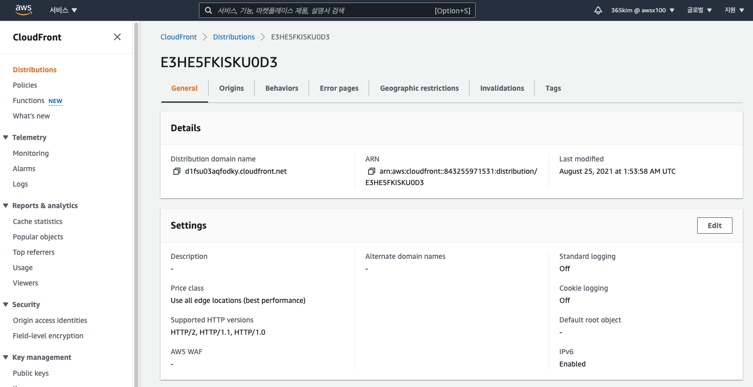 Origin domain 을 생성해둔 S3의 엔드포인트로 설정한다.