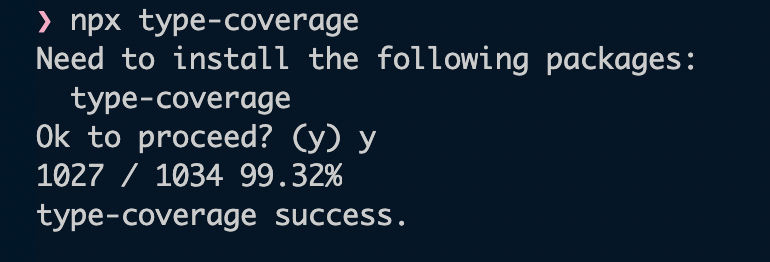 타입 커버리지는 type-coverage 패키지를 npx 로 실행해서 간단히 확인할 수 있다.