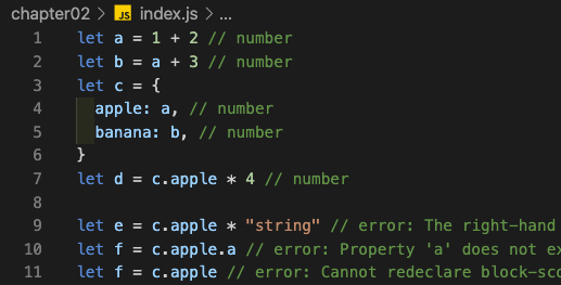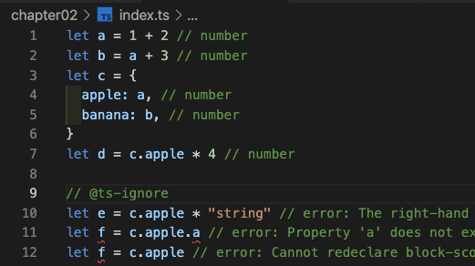 바로 다음 라인의 타입체크를 수행하지 않는다.