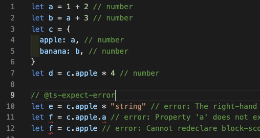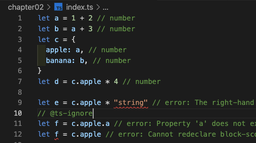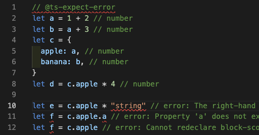 바로 다음 라인에 에러가 있을 경우, 에러를 막는다. 바로 다음 라인에 에러가 하나도 없으면 ts-expect-error 자체가 에러가 난다.