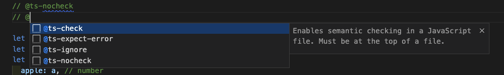 // @ts-ignore 를 쓰려다 자동완성 되는 것 보고 각 옵션이 궁금해졌다.