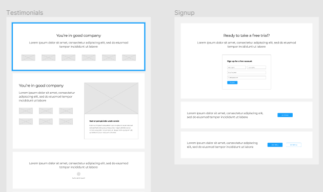 텍스트, 버튼 등 화면 구성을 정의하고 화면 간 워크플로우를 표현한다. 픽셀 단위로 신경 쓰지 않는 단계이므로 효율적이다.