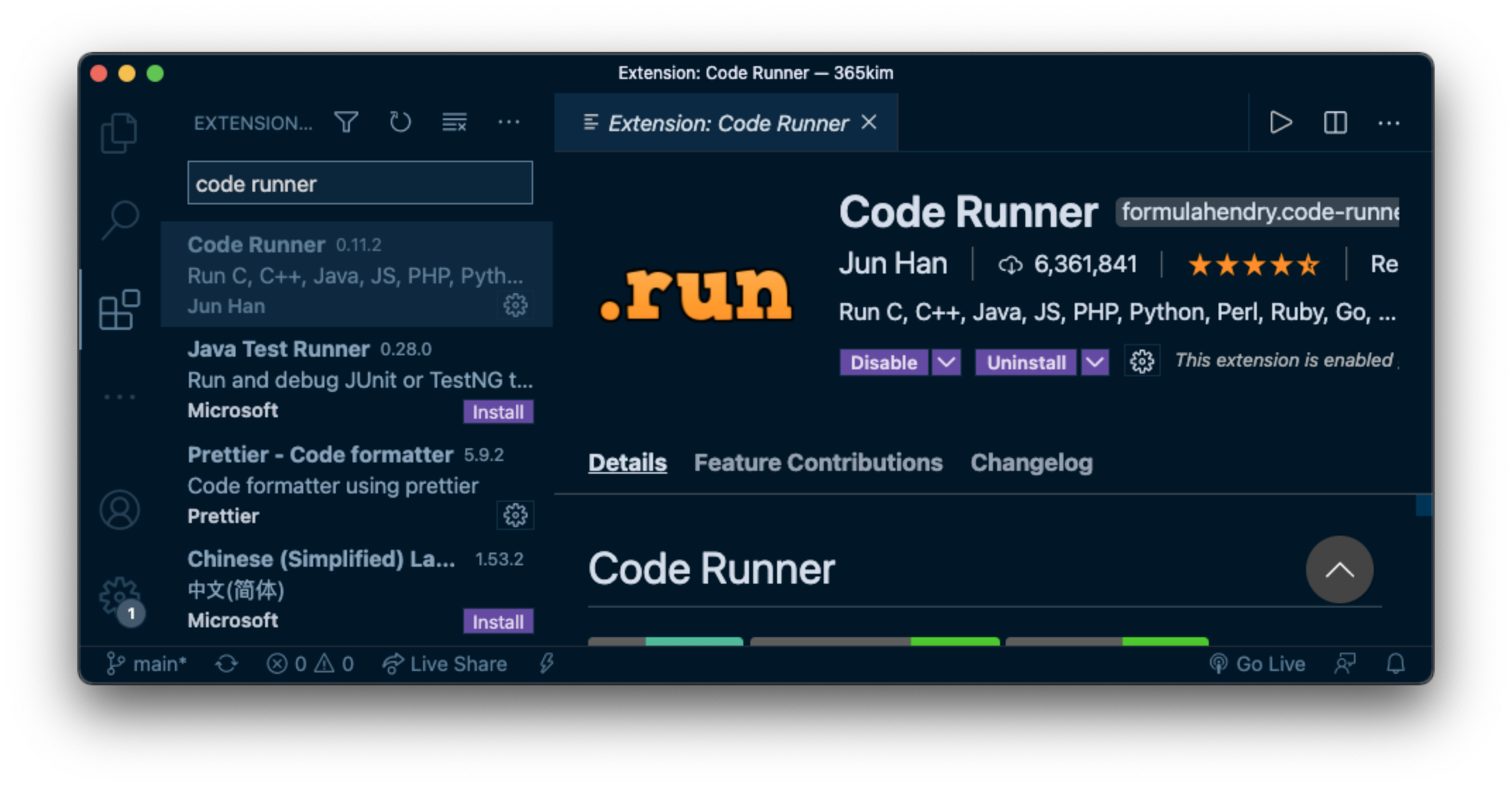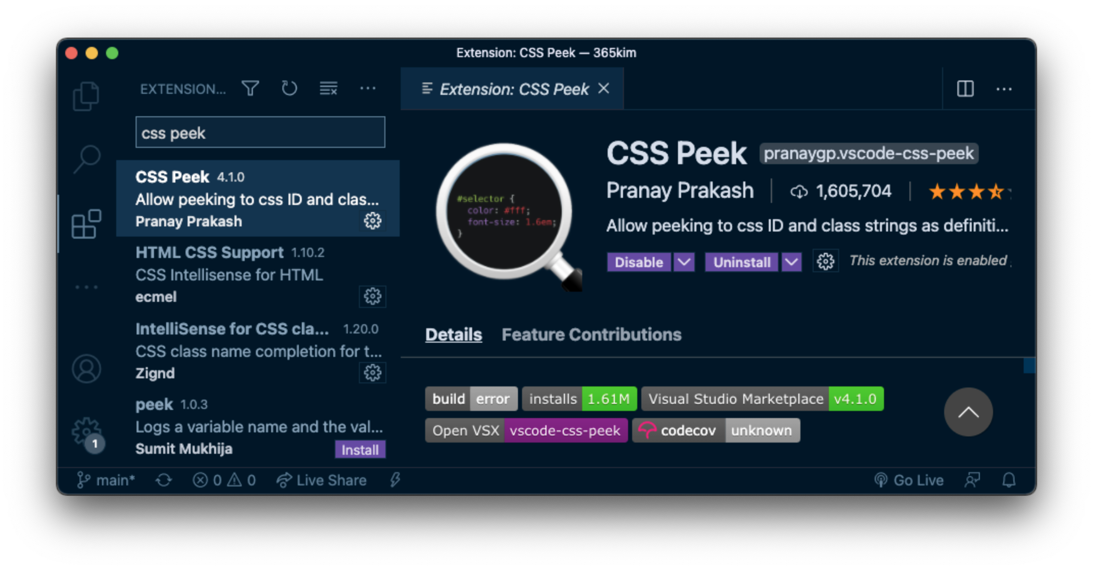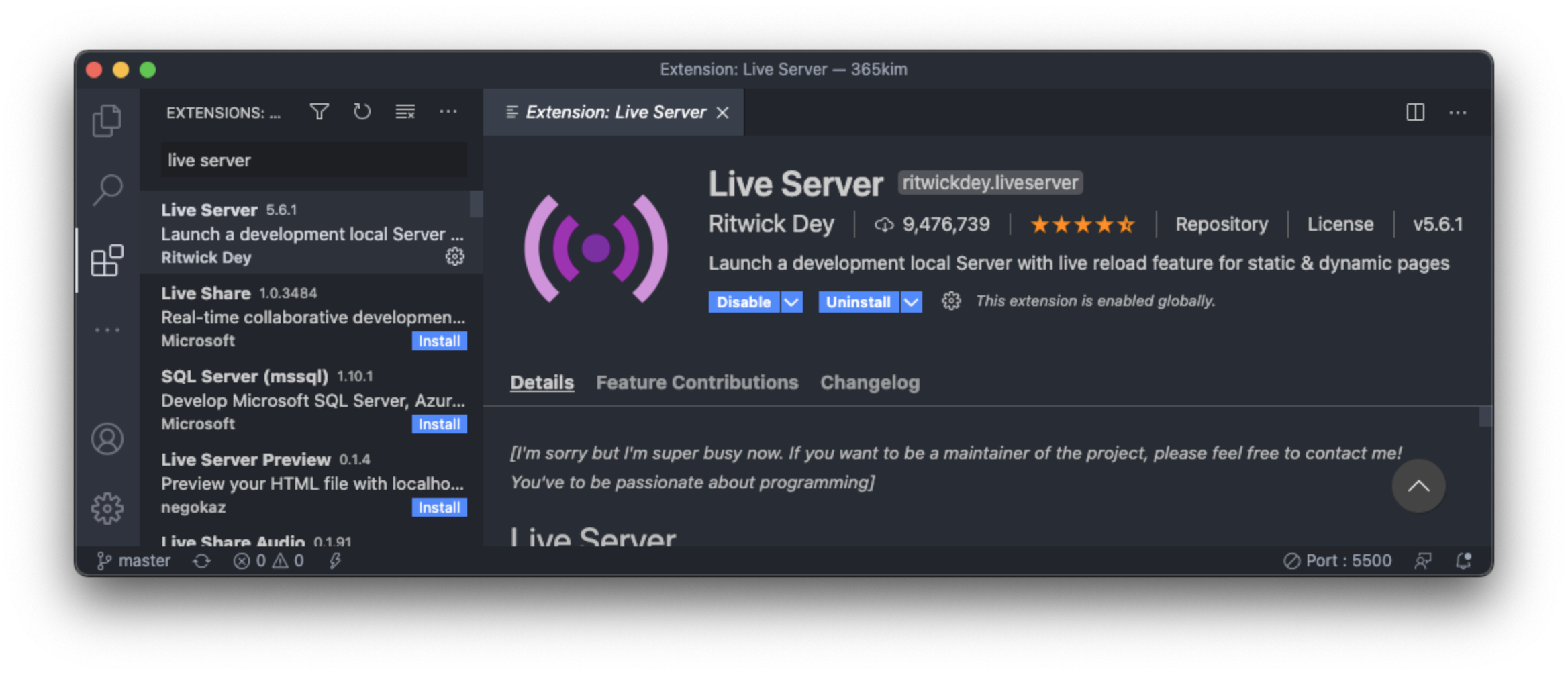 좌측 Extension 탭에서 theme이라고 검색하면 다양한 테마를 골라볼 수 있다. Install 버튼을 누르면 자동으로 적용된다. 대부분 스크린샷으로 예시를 보여주고 있는데 그렇지 않다면 Install 해서 확인하는 것도 방법이다. 마음에 들지 않는다면 Uninstall 버튼으로 쉽게 삭제할 수 있고, 여러 가지 테마를 설치해두고 원할 때 설정을 변경할 수도 있다.