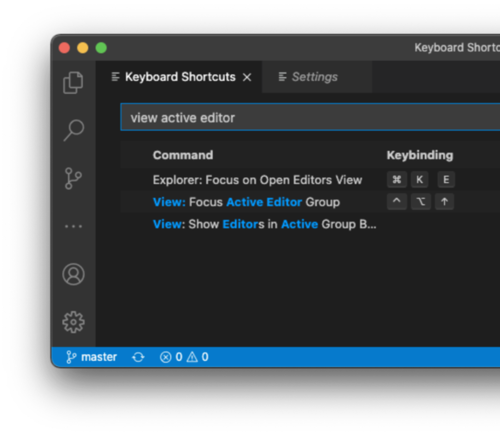 에디터는 상단에 위치해있으니 에디터로 초점을 이동하는 'Focus Active Editor Group'은 위쪽 화살표⬆를 함께 조합했고 터미널은 하단에 위치해있으니 터미널로 초점을 이동하는 'Focus on Terminal View'는 아래쪽 화살표⬇를 함께 조합했다.