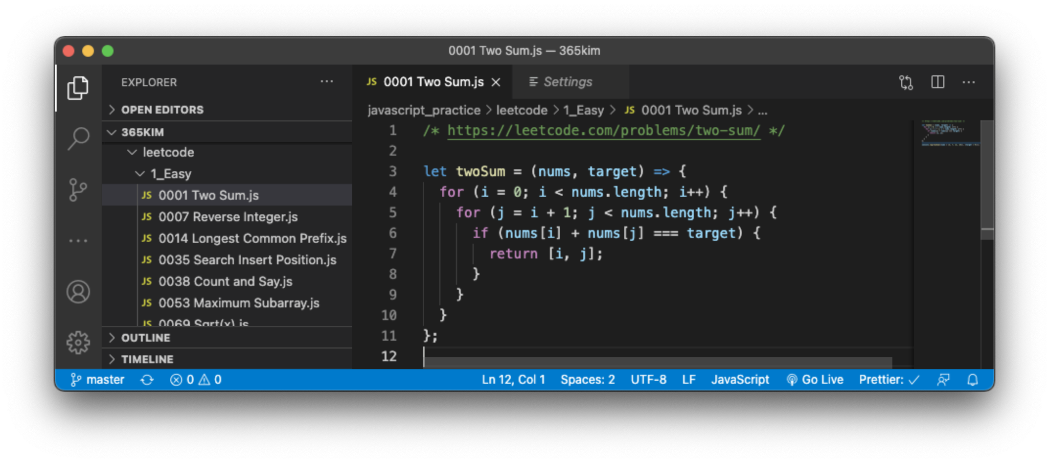 Font Size는 기본값 12로 설정되어 있다. Font Size를 변경하면 코드의 폰트 크기만 조절할 수 있는데 이 방법은 cmd +,- 로 View의 전체 배율을 변경하는 것과 다르다. 전체 배율을 높이면 화면 전체가 확대되어 당연히 좌측 패널의 파일 목록이나 터미널도 같이 확대되는데, 이렇게 되면 한 번에 많은 파일을 보거나 터미널의 내용을 확인하기 불편하다.