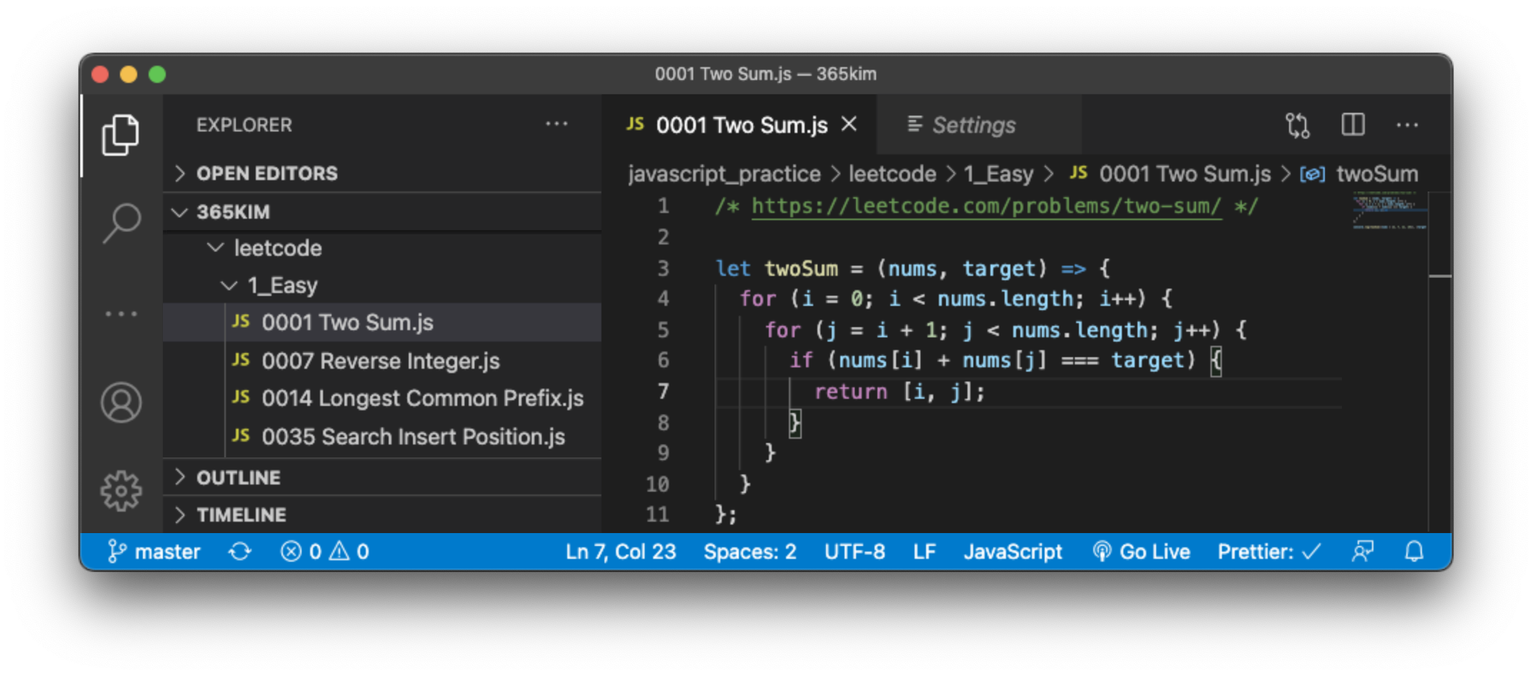Tab Size는 기본값 4로 설정되어 있다. 자바스크립트 코딩 컨벤션에서 indent 를 2로 지정하고 있어 2로 변경해주었다.