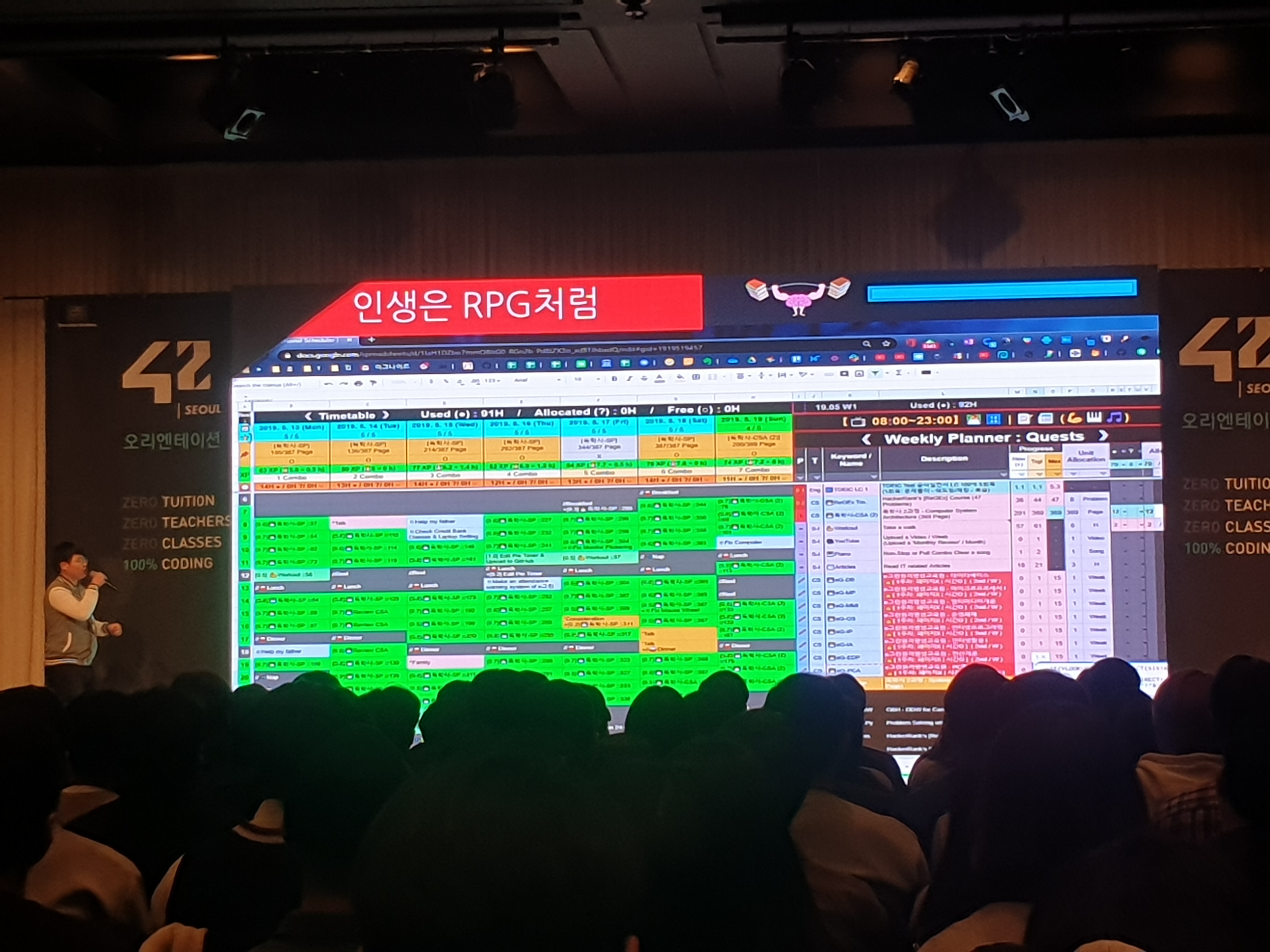주변의 도움이 없었다면 이렇게 적응할 수는 없었을 것이다. 서로서로 돕는 분위기였다. 모르는 게 있으면 서로 서슴없이(?) 물어보고 흔쾌히 알려줬다. 서로의 버그에 관심을 가졌다. 혹여나 해결을 못해도 같이 보는 것만으로 큰 힘이었다. 42의 피어 러닝을 실천하며 '교수님' '교장선생님' 등의 별명으로 불리는 교육생 분들도 계셨다. 테스트 케이스를 왕창 공유해주시는 '인간 테케'님도 계셨고, 몇몇 분들은 팬클럽이 생겼다.