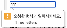 | pattern 📌 | <input>의 입력값을 확인할 정규식을 지정한다. 예시 pattern="[A-Za-z]{3}" ![]() |