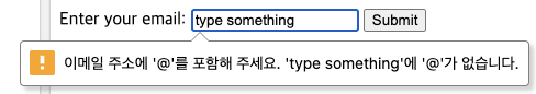 | type="email" | <input>을 이메일을 포함해야하는 입력필드로 지정한다. 브라우저에 따라 제출 시 이메일 주소 유효성검사가 자동으로 이루어진다. 일부 스마트폰에서는 type="email"을 인식하고 키보드에 ".com"를 추가로 띄워준다. ![]() |