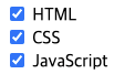 | type="checkbox" | <input>을 체크박스로 지정한다. 선택지 중 0개, 1개 또는 여러 개를 선택할 수 있다.![]() |