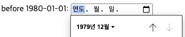 | type="date" | <input>을 Date Picker로 지정한다. min, max속성으로 날짜 범위를 지정하면 Date Picker 캘린더에 지정한 기간만 활성화된다. ![]() |