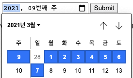 | type="week" | <input>을 Week Picker로 지정한다.![]() |