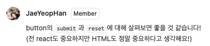 | type="submit" 📌 | 데이터를 제출하기 위한 버튼으로 지정한다. (기본값) |